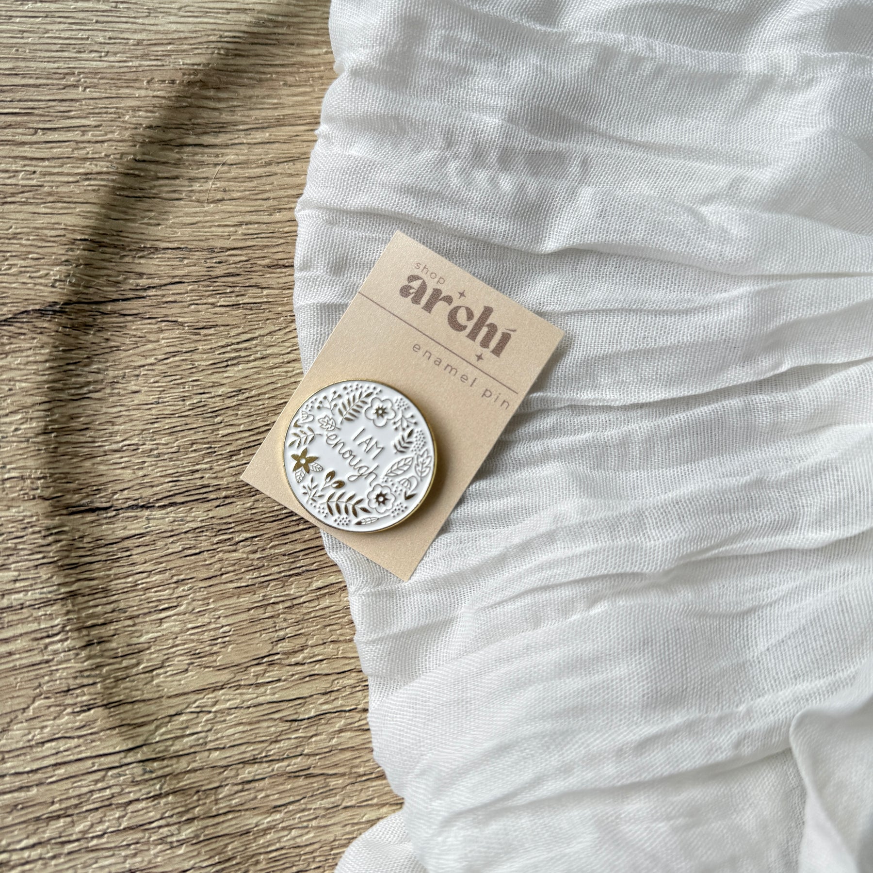 A wearable whisper of truth for the days you need it most. The I Am Enough Enamel Pin features a beautifully detailed floral wreath surrounding a powerful three-word affirmation. Designed to blend seamlessly with your daily style, this pin is a quiet celebration of your inherent worth and the journey you are on. Pin it to your favorite Archi bag or denim jacket as a constant reminder that you are whole, exactly as you are.