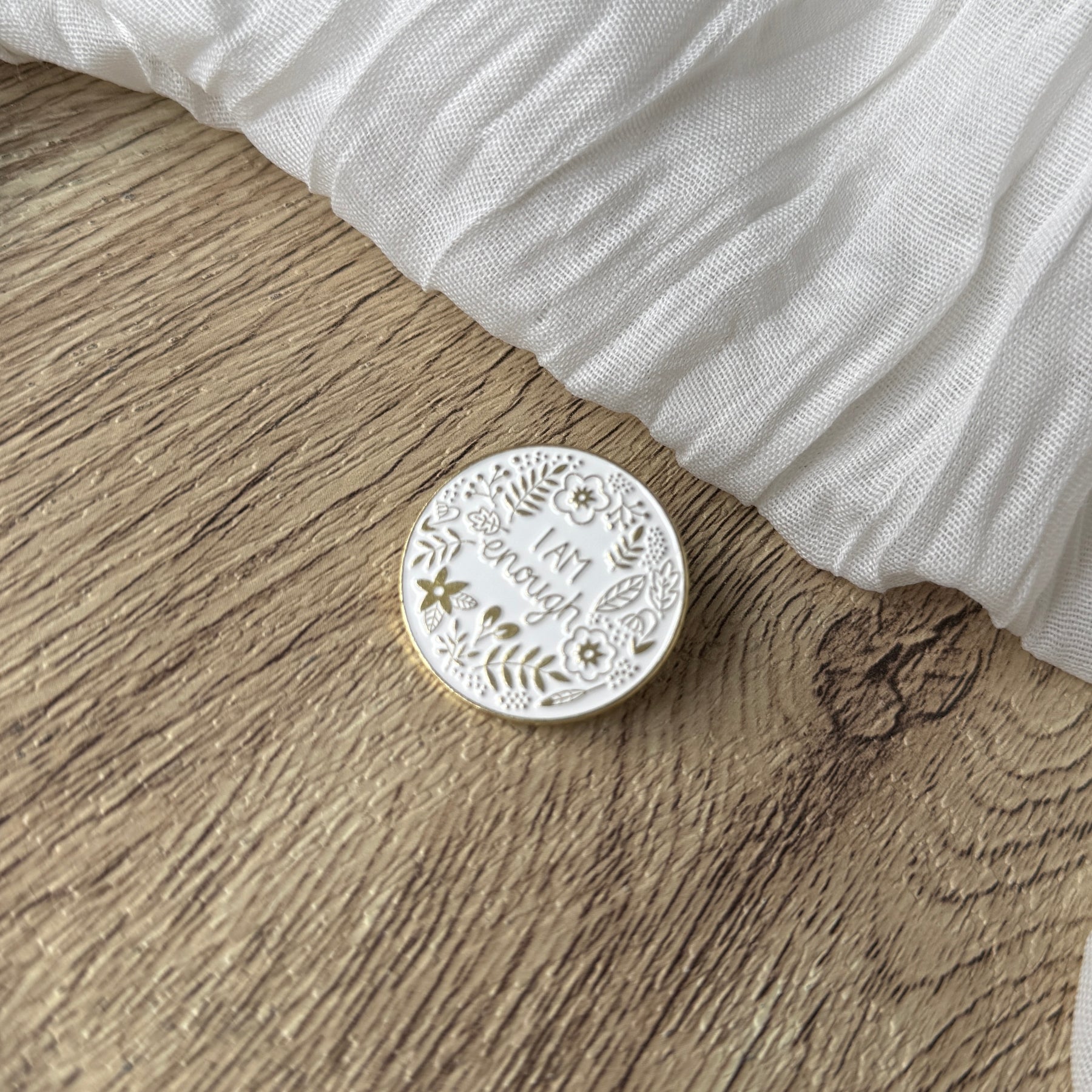 Empowering Affirmation: A clean, modern "I am enough" script serves as a daily anchor for self-love and confidence.